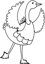 17. Draw straight lines at each end then connect these straight lines with four more loops. 18. Draw three tail-feather loops near the middle of his wing. 19. Begin at the tail feathers and draw a big curve reaching all the way to the bottom of the apron. 20. Draw his legs. Two lines close together, for each leg. 21. End with three of the letter "V" to form a duck foot. Also, finish your drawing with a couple of details: Draw a line for his back from the ties to the wing. Draw a tie from the apron up to the wing. And lastly, add the little dotted lines (stitching) to the pockets, from point to point.